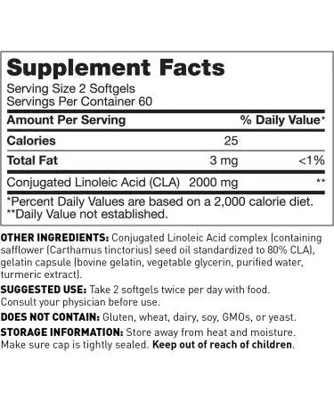 Conjugated Linoleic Acid (CLA), which is usually obtained from sunflower or safflower oil, is the primary component of the Amy Myers MD CLA Metabolism Supplement. Glycerin, rice flour, silica, and gelatin (capsules) are possible additional ingredients.