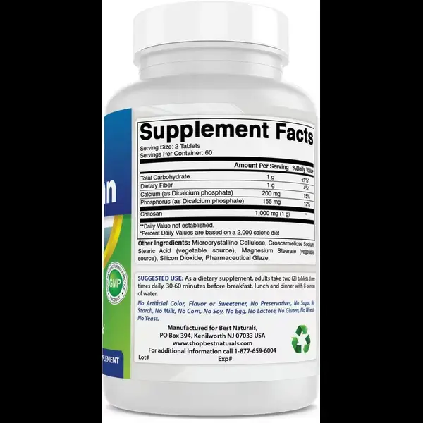 Before meals, especially those that contain a lot of fat, take Best Nature Chitosan Premium Formula. Take as directed by the label, drinking lots of water