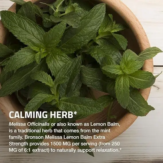 Bronson’s Melissa Lemon Balm Extra Strength? Oh man, that stuff’s a chill pill in a bottle. It’s supposed to help you kick back, knock the edge off your stress, and just vibe a bit better mentally. Not gonna lie, if your brain’s running marathons at 3 am, this could be the herbal sidekick you didn’t know you needed. Lemon balm (Melissa officinalis), a member of the mint family, has been historically used for hundreds of years because of its calming properties and capability advantages for sleep, digestion, and cognitive features. Each serving of Bronson's complement offers an amazing 1,500 mg dose of lemon balm extract, derived from a focused 6:1 ratio (250 mg extract), ensuring excessive efficacy.