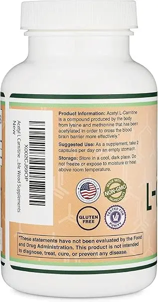 A high-end supplement called Double Wood Acetyl L-Carnitine (ALCAR) is intended to promote energy production, brain health, and general cognitive performance. ALCAR, a highly accessible version of L-carnitine, is essential for brain function and cellular energy metabolism. This supplement is perfect for those looking to improve their focus, mental clarity, and level of exhaustion. Every bottle contains lab-tested, high-potency ALCAR, guaranteeing both efficacy and safety. Made in the USA, it is devoid of artificial ingredients, gluten, and genetically modified organisms and meets stringent quality standards. The body produces the amino acid L-carnitine, which can be found in some meals and supplements. It might have certain health advantages, such as better brain function, weight loss, and more. L-carnitine is frequently taken as a supplement, a naturally occurring derivative of an amino acid. It may affect brain function and is used to lose weight.