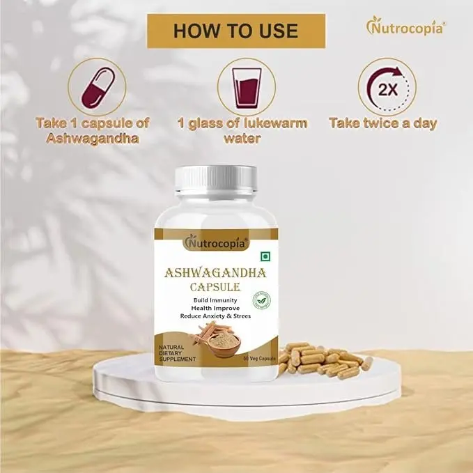 Take one capsule of Nutrocopia Ashwagandha Supplement daily with water, preferably after a meal