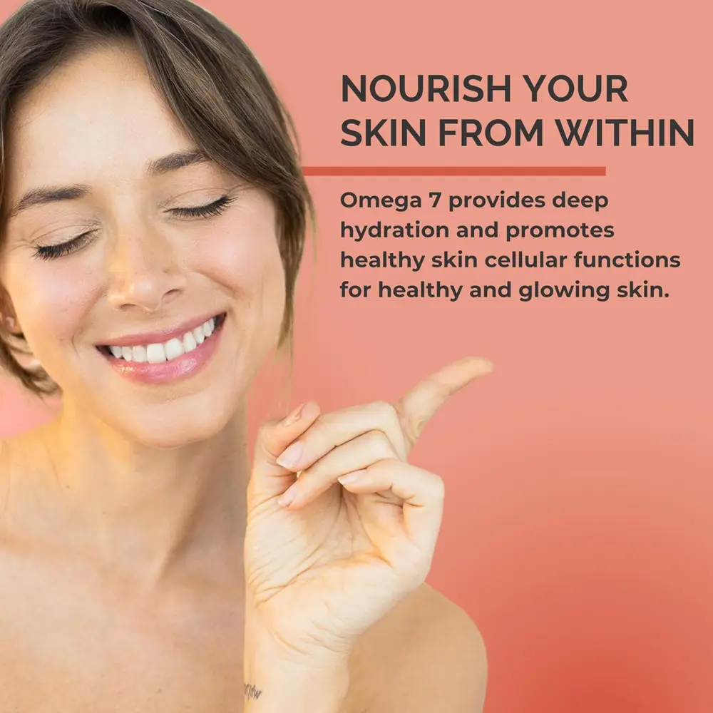 Skin and Mucous Membrane Health: Omega-7 helps maintain moisture and elasticity in the skin and supports mucosal linings of the digestive and respiratory tracts.