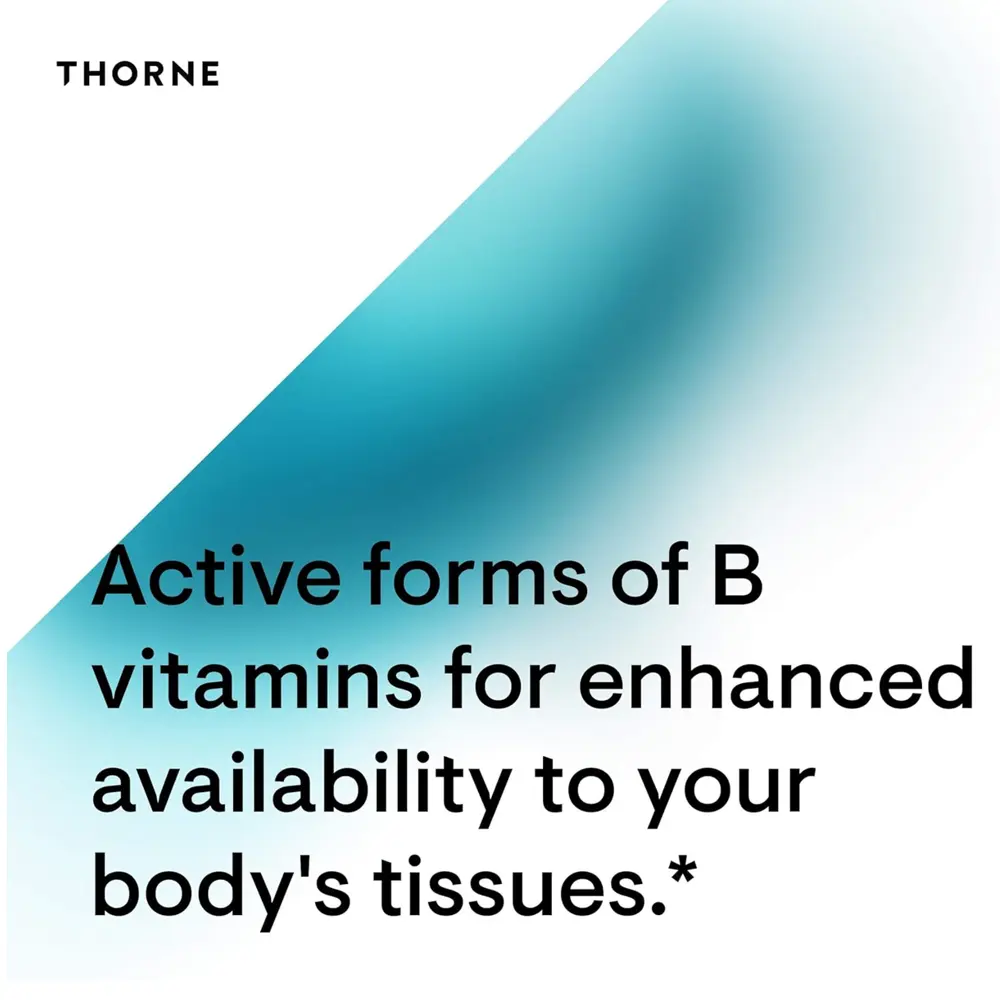 Thorne Basic B Complex Capsules provide a complete spectrum of essential B vitamins in their most bioactive forms, supporting daily energy production, neurological function, and overall metabolic health. This formula includes the active forms of vitamins B2 (riboflavin 5’-phosphate), B6 (pyridoxal 5’-phosphate), B12 (methylcobalamin), and folate (L-5-MTHF), which are more easily absorbed and utilized by the body. Designed for individuals who may be exposed to stress, have digestive issues, or need nutritional support, Thorne’s Basic B Complex delivers balanced, non-GMO, gluten-free support without any artificial ingredients. Manufactured in the USA and rigorously tested for purity and potency, Thorne ensures a high-quality supplement trusted by health professionals worldwide. Ideal for daily wellness, this B vitamin blend is especially beneficial for vegetarians and those with nutrient absorption concerns.
