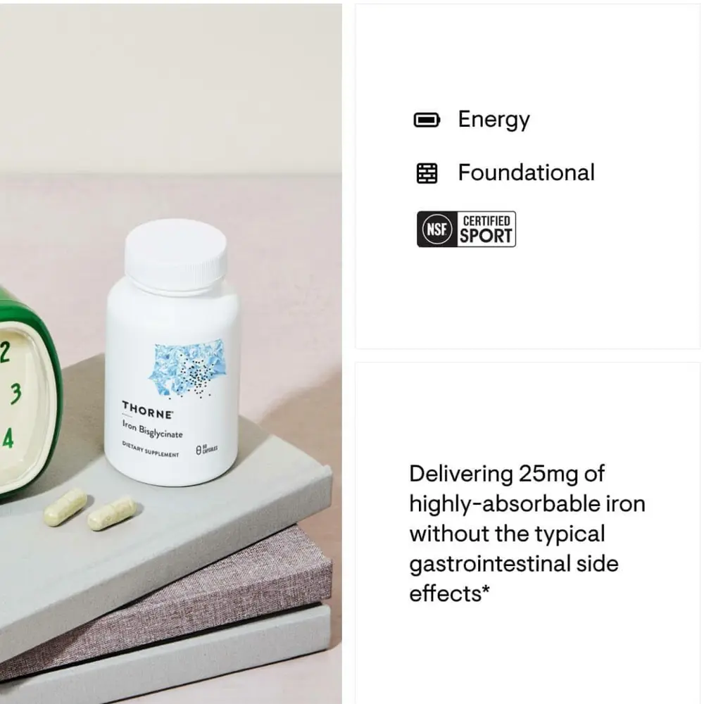 Thorne Iron Bisglycinate Capsules offer 25 mg of elemental iron in a surprisingly absorbable bisglycinate shape, designed to aid people with iron deficiency or improved iron needs. This chelated shape of iron is mild at the stomach, minimizing not unusual gastrointestinal aspect consequences together with nausea and constipation. Supplementation can assist alleviating signs and symptoms related to iron deficiency, together with fatigue, weakness, and impaired cognitive function. Thorne`s dedication to high satisfaction guarantees that this product is NSF Certified for Sport®, making it appropriate for athletes and energetic people. Each bottle consists of 60 vegetarian capsules, free from gluten, dairy, soy, and other important allergens, catering to numerous nutritional preferences. Regular intake, as directed with the aid of using a healthcare professional, can aid best power tiers and typical well-being.