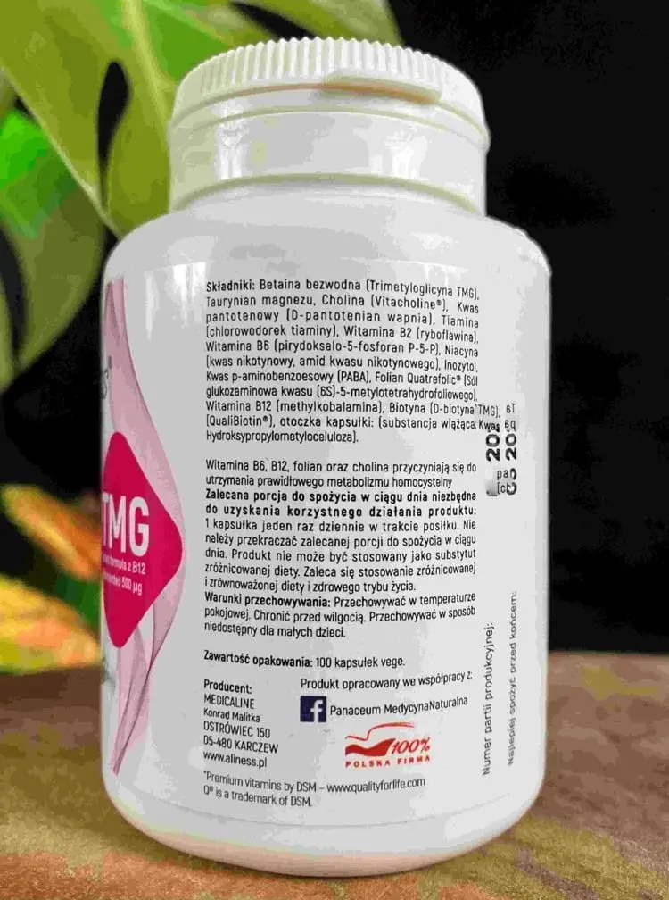 Aliness Witamina B Complex B-50 Methyl TMG Plus is a high potency B vitamin complex designed to support your body’s energy production, nervous system, and cardiovascular health. This advanced formula combines essential B vitamins at 50 mg doses with Methyl TMG, a key compound that promotes efficient methylation and helps regulate homocysteine levels.