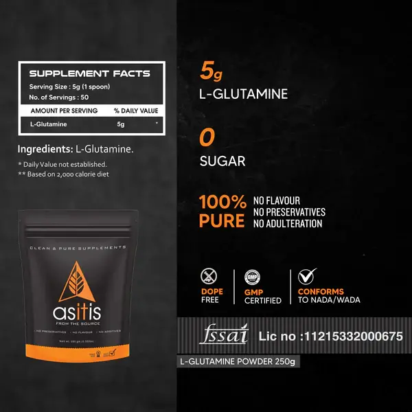Mix one scoop (5g) of AS-IT-IS L-Glutamine with water or juice. Consume 1–3 times daily