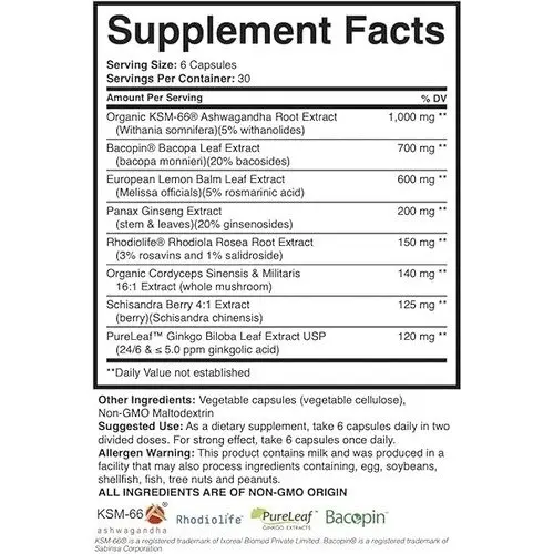 Brain Forza Adapt All Adaptogen Supplement is an effective combo of adaptogenic herbs designed to help with stress management, temper enhancement, and bodily performance. Combining elements from Ayurveda and Traditional Chinese Medicine, this complement consists of KSM-66® Ashwagandha for strain reduction, Bacopin® Bacopa for cognitive clarity, Rhodiola Rosea for elevated endurance, and Ginkgo Biloba to enhance movement and intellectual function. Furthermore, it includes Panax Ginseng for vitality, Cordyceps to enhance athletic performance, and Schisandra Berry for liver support and alleviating stress.