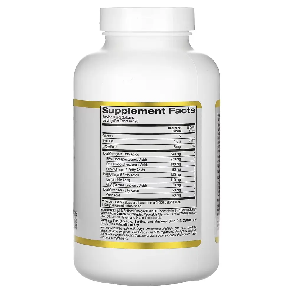 California Gold Nutrition Omega-3 is an incredible fish oil supplement designed to help heart, mind, eye, and joint fitness. Each softgel offers 1,000 mg of molecularly distilled fish oil, handing over a hundred and eighty mg EPA and one hundred twenty mg DHA— crucial omega-three fatty acids. This product is sourced from deep-sea fish, processed to get rid of mercury and different contaminants, and synthesized in a cGMP-licensed facility. It is freed from GMOs, gluten, and soy. The softgels are clean to swallow and perfect for every day cardiovascular, cognitive, and inflammatory help. A dependable desire for keeping long-term fitness and average well-being.