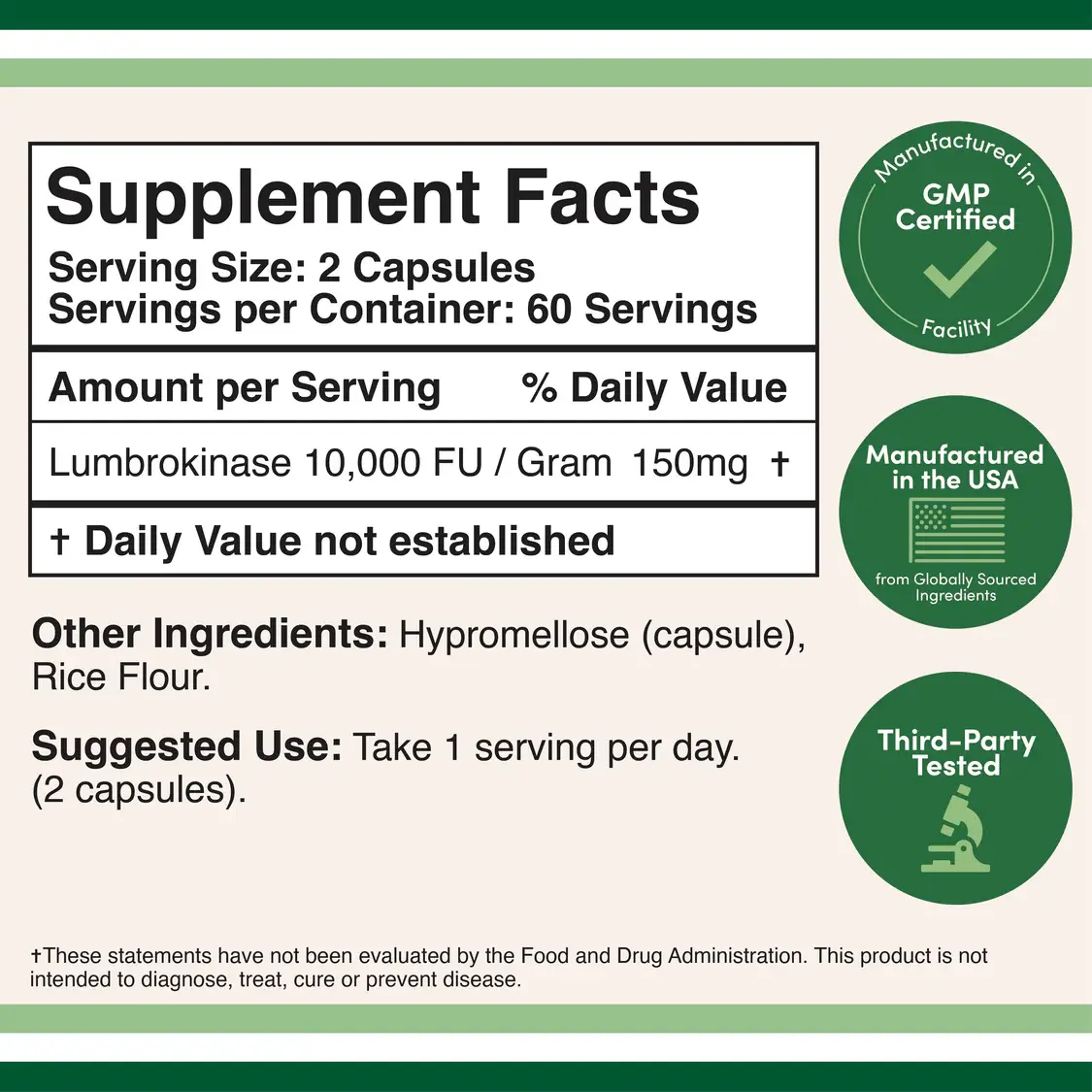 Contains high-quality lumbrokinase enzyme. Supports healthy blood flow and circulation. Non-GMO, gluten-free, and third-party tested for quality. Easy-to-engulf capsules for easiness.