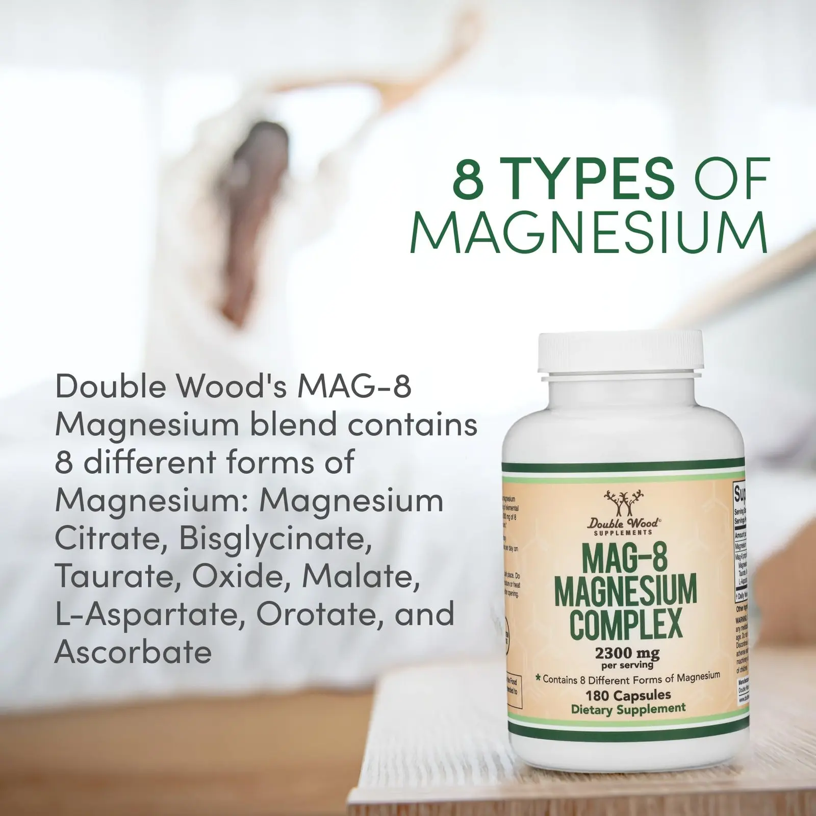 Double Wood Magnesium Complex is a dietary supplement designed to support optimal magnesium levels in the body. This product combines various forms of magnesium, including magnesium glycinate, citrate, and malate, ensuring enhanced bioavailability and absorption. Ideal for individuals seeking to improve muscle relaxation, nerve function, energy production, and overall well-being, it offers a convenient way to maintain magnesium balance in your daily routine.