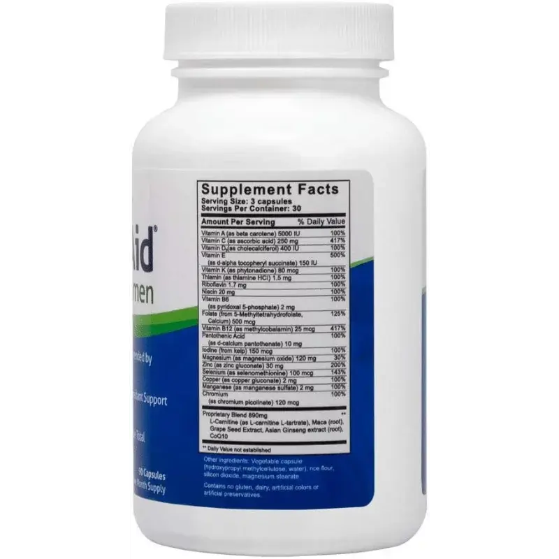 Contains methyl folate in place of folic acid—methyl folate is the bioactive form of vitamin B9, an important nutrient for many physiological processes; also offers methylated vitamin B12 as methylcobalamin.
