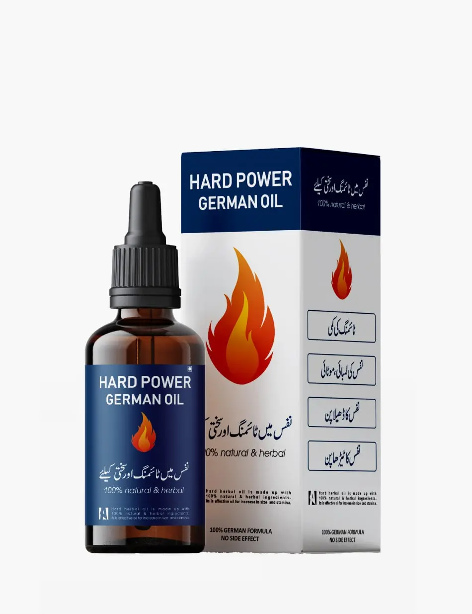 Boost stamina, size, and confidence with Hard Power German Oil. Made from 100% herbal ingredients, it improves blood circulation, increases length and thickness, and treats erectile dysfunction naturally without side effects.