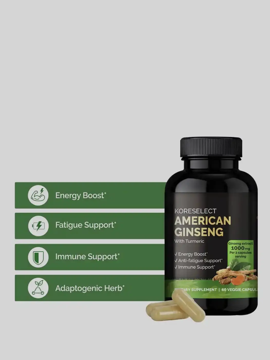 enhances energy, reduce fatigue, strengthen immunity with Koreselect American Ginseng with Turmeric