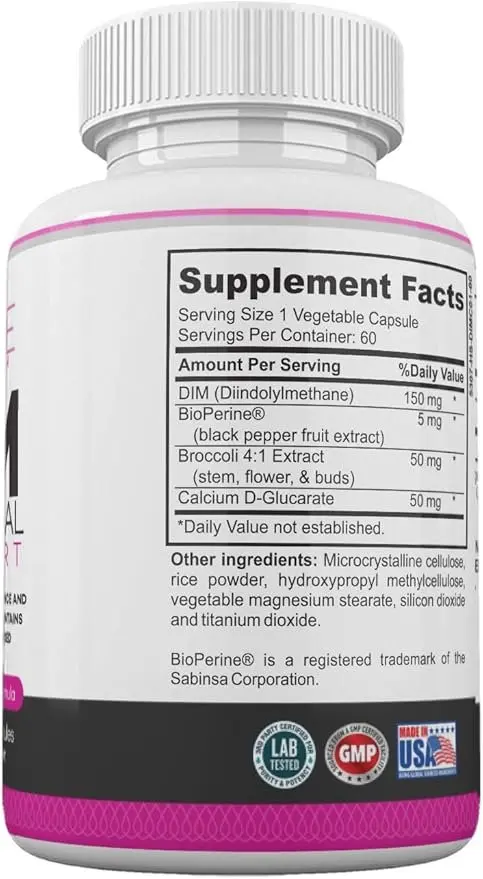 A nutritional supplement called LADME DIM Hormonal Support for Women is intended to support hormonal balance, particularly for women who are coping with menopause symptoms, hormonal acne, estrogen dominance, and PMS. Diindolylmethane (DIM), a naturally occurring substance obtained from cruciferous vegetables, is present in it and aids in controlling estrogen metabolism for general health. A substance known as diindolylmethane (DIM) is found naturally in cruciferous vegetables like kale, cauliflower, and broccoli. It is created in the body during the digestion of these vegetables and is well-known for its function in maintaining hormonal balance, especially in controlling the metabolism of estrogen. Support for a healthy estrogen level for women who have breast soreness, discomfort, and heavy periods. has a lot of DIM (Di-indolylmethane), which helps ladies who have an imbalance in their estrogen levels assist for poor mood, breast discomfort, fluid retention, and heavy menstrual cycles. It works well with oral contraceptives. Purple carrots are now organically coloring the capsule.