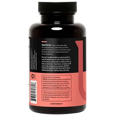 Legion Phoenix Stim-Free Fat Burner Ingredients: Green Coffee Bean Extract (500mg), Irvingia® IGOB-131 (300mg), Green Tea Extract (250mg), Grains of Paradise (30mg), 5-HTP (150mg), Forskolin (50mg), Fucoxanthin (8mg), Vitamin B6 (1.7mg), Vitamin B12 (2.4mcg), Iodine (240mcg).