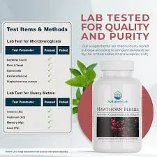 Hawthorn Berry Fruit (Crataegus pinnatifida Bunge), providing 565 mg per capsule. It contains antioxidant compounds like oligomeric proanthocyanidins (OPCs).