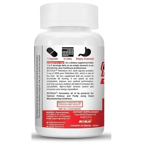 Nutrija Yohimbine HCl Supplement helps lose fat by focusing on cursed fat regions through stronger fat mobilization. It boosts power and focus, making exercises more powerful and intense. The complement additionally enables appetite suppression, assisting in higher calorie control. Additionally, it improves blood flow and helps a quicker metabolism, contributing to general weight control and overall performance enhancement.
