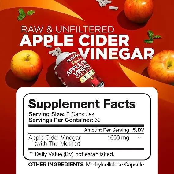 The vegan, non-GMO, and preservative-free Nutrivein Apple Cider Supplement has 1,600 mg of apple cider vinegar per serving.