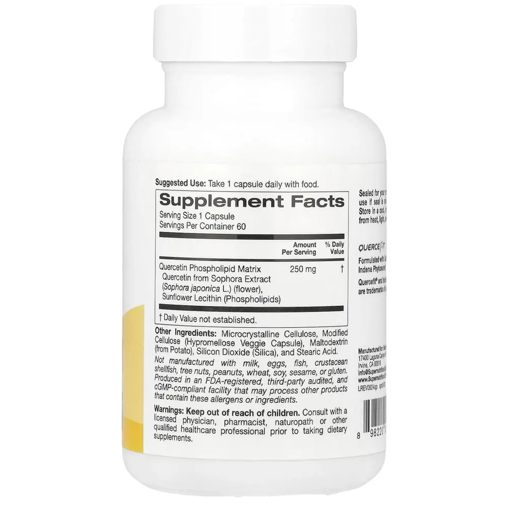 A flavonoid antioxidant (discovered in onions, apples, and berries) formulated with phosphatidylcholine (from sunflower lecithin) to dramatically enhance absorption—as much as 50× better as compared to conventional quercetin. Quercetin, a natural flavonoid determined in components like onions and apples, is known for its antioxidant and anti-inflammatory properties. However, its preferred shape has constrained absorption inside the body. Quercefit addresses this by means of binding quercetin to sunflower lecithin, improving its absorption and effectiveness. Each pill can provide 250 mg of this superior quercetin complex, helping immune health, cardiovascular function, and typical well-being. The product is vegan-friendly, free from most allergens, and synthesized in a cGMP-compliant facility, ensuring niceness and safety.