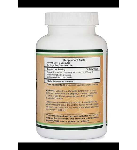 Brand: Double Wood Form: Capsules Quantity: 120 capsules per bottle1200 mg of Turkey Tail extract (2 capsules) per serving is the dosage. Certifications: Non-GMO, gluten-free manufactured in the USA.