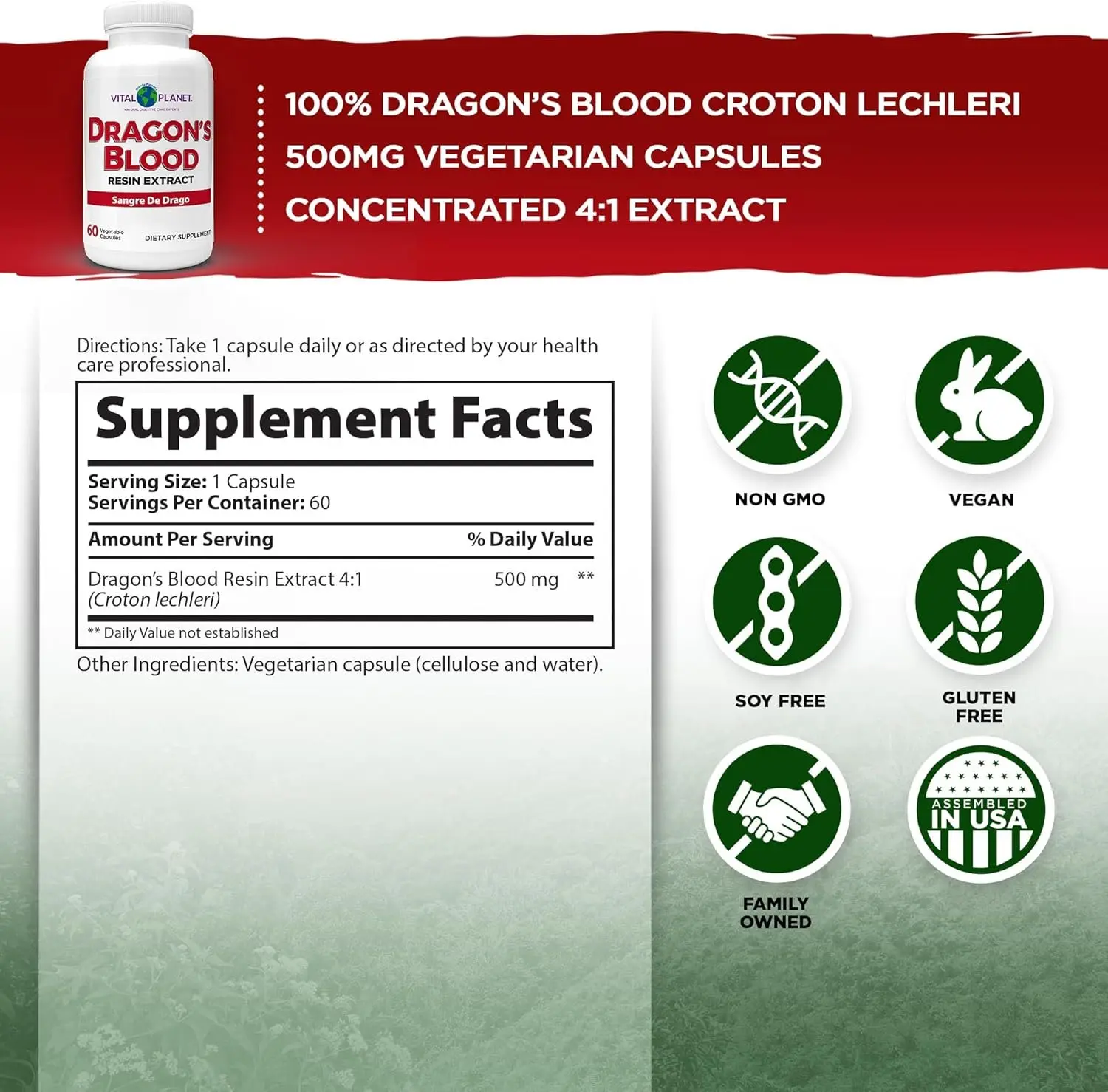Dragon’s Blood Resin Extract (Croton lechleri): 500 mg